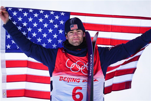2月16日,美国选手亚历山大·霍尔在北京冬奥会自由式滑雪男子坡面障碍技巧决赛中。新华社记者肖艺九摄