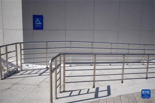 这是2月25日在张家口赛区国家冬季两项中心场馆拍摄的无障碍坡道。