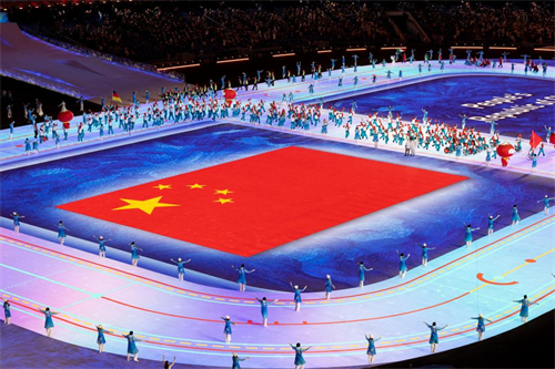 场地中央,洁白的冰面渐渐幻化成闪烁星海。过往12届冬残奥会的光辉历史,在灿烂星辉中一一闪过。最终画面在“2022北京”定格,现场观众屏息凝神。