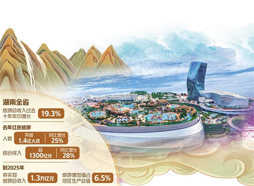 “到2025年,湖南将实现旅游总收入1.3万亿元,旅游接待总人次7.5亿人次,人均消费1500元以上,旅游增加值占地区生产总值的6.5%。”李爱武说。