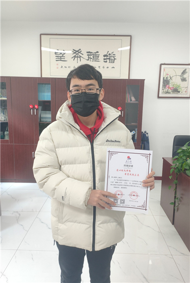 在疫情防控过程中,王鹏飞展现了党员风采,彰显了新时代大学生的精神风貌。他的行为感染了周围的人,也带动了同学们,为此团省委给予王鹏飞以表彰。