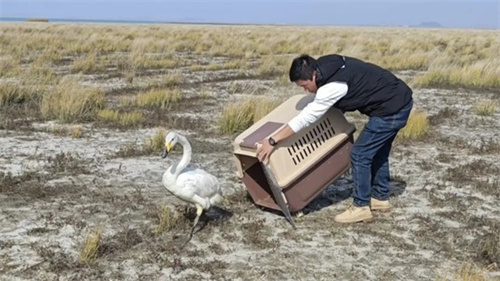 9月中旬,当这只大天鹅被送至克旗野生动物救助站时,翅膀存在明显外伤。历经月余时间,经过救助站工作人员的科学护理与精心喂养,大天鹅重新获得了飞翔能力和自主觅食能力,经专业评估,符合野外放飞标准。为保障大天鹅顺利回归自然,工作人员将放飞点选定在达里诺尔国家级自然保护区候鸟迁徙通道,能助力大天鹅快速融入北飞的大天鹅集群,重归自由天空。