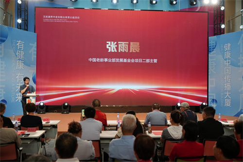 中国老龄事业发展基金会项目二部主管张雨晨参加发布会并讲话。张雨晨在讲话时提到:“党和国家心系老年人的身体健康,相关政策文件曾多次提及要研究推广老年体育项目,丰富老年人体育赛事活动,加强老年人体育健身工作。为此,基金会也开展了一系列促进老年体育事业发展的公益项目,从老年瑜伽课程的研发,到少数民族特色运动展示,从老年人健身操汇演,到棋牌类益智活动组织,老年人的需求盼望,就是公益项目的前进方向。希望在此次活动中,各执行单位和合作伙伴能够充分发挥专业优势,坚守公益初心,丰富活动内容,覆盖更广泛的老年群体,同时强化安全意识,以老人为本,让“体育+公益”的涓涓细流,汇聚成提升中国亿万老年人生活品质与幸福感的磅礴力量”。