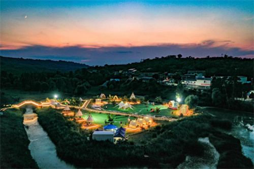 今年夏天,沉浸式露营成为避暑新风尚,“拥抱乡野”备受热捧。在虒亭镇宝峰湖畔的建华村露营基地,绿意葱茏、溪水潺潺,游客们野餐畅聊、笑语欢声,尽享乡野之趣。