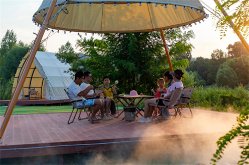 刚刚和小伙伴“探险”回来的桑雨萱,指着不远处的滑梯和散着水汽的小河道,迫不及待地和记者分享:“这里超好玩!有滑滑梯、小河道,还可以唱歌、吃烧烤,而且很凉快。大家开心极了!” 大人和孩子们的无忧无虑,正是建华村借鉴“千万工程”经验,精心打造的近郊沉浸式露营新场景最动人的注脚,让市民轻松抵达“诗与远方”。