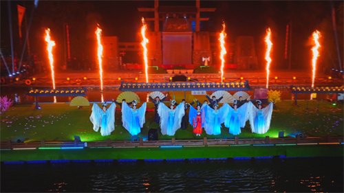 10月4日,夜幕下的恋乡·太行水镇,《演易》大秀系列节目精彩上演。 王登峰 摄
