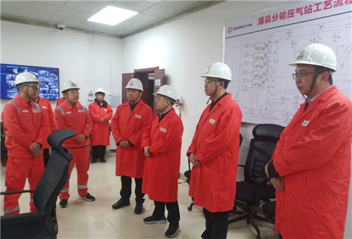 在国家管网集团西气东输公司蒲县站,李强一行实地查看了加压站工艺流程,详细询问了工作人员日常巡线、管道检查、值班值守等情况。