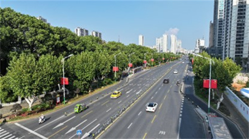 如果要问10月街头什么最美?答案一定是那抹绚丽的“中国红”。如今漫步仙来大道、钟灵大道、北湖路和劳动南路等主次干道上,映入眼帘的是一排排整齐悬挂的五星红旗。3800余面红旗在秋日蓝天的映衬下迎风招展,与葱郁的街道绿树交织,成为城市中最动人的风景线。