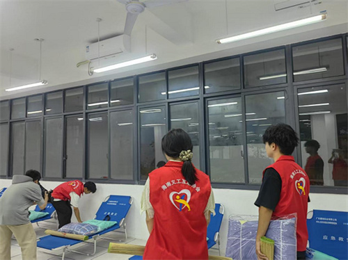 “24小时起步,做好48小时甚至更久的准备!”杜江指令清晰有力。柯行增与团队成员立即响应,立下“军令状”。应急点内,志愿者们忙碌不停:段珂主动帮助带孩子的母亲搬运行李,引导至安全区域;关博林耐心安抚情绪焦虑的老人,递上热水;包宏彬往返于物资区与休息区,细致分发面包、八宝粥、牛奶、月饼等物资,并贴心询问是否需要冲泡方便面。柯行增更是连续奋战,协调物资、巡查现场,仅在墙角短暂休息后,又立即投入工作,确保每一位避险市民得到妥善安置。
