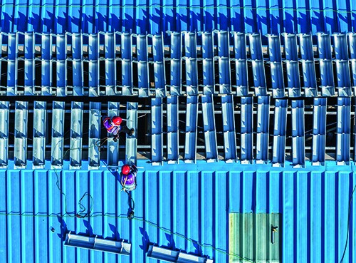 工人在进行设备、厂房安装作业 作者:蒋克青 / 来源:中经视觉