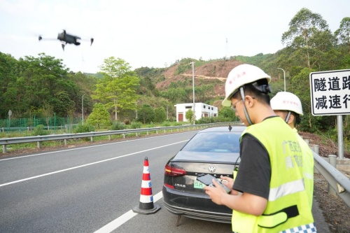图为工作人员利用无人机航拍技术开展高速公路检查 (广西壮族自治区高速公路发展中心南宁分中心供图)