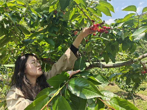 2024年汉中卷烟厂援建的大樱桃园初次挂果。谢勇 摄