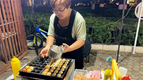 聂燕正在制作章鱼小丸子。摄/李光英