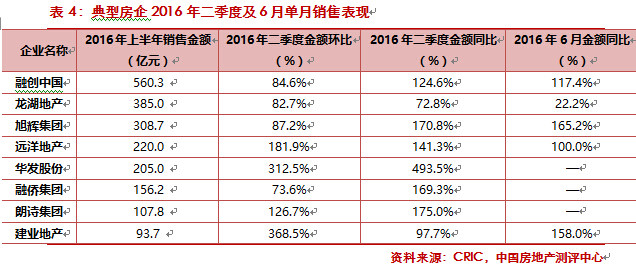 2016年二季度,市场延续了一季度的火爆态势,更多的房企借势发力,积极营销,环比和同比销售金额均有大幅提升,部分增幅超过300%;尤其是6月,房企为冲刺半年业绩更加大了推盘力度,销售金额较去年同期翻番的不在少数。