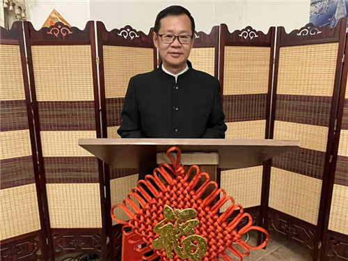 中国驻吉达总领事谭邦林在总领馆“云端”新春联欢会上致辞(中国驻吉达总领事馆供图)